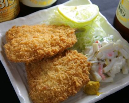 *アジフライの単品はマカロニサラダとキャベツの千切り