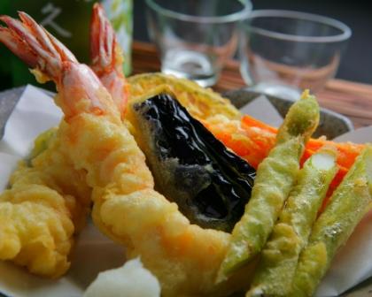 天ぷらの盛合せは季節ごとの野菜と肉厚な海老を